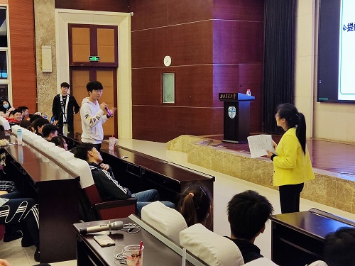 随后赵老师以一句“现在,让我们开始谈恋爱吧!”诙谐开场,藉此消除了师生间的生疏感,架起了与同学们沟通的桥梁,为整场看似严肃的话题涂上了活跃的色彩。