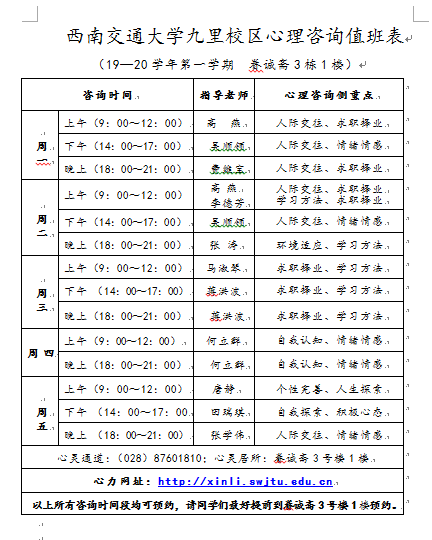 吃瓜黑料 吃瓜黑料 2019-2020学年第一学期心理咨询值班表