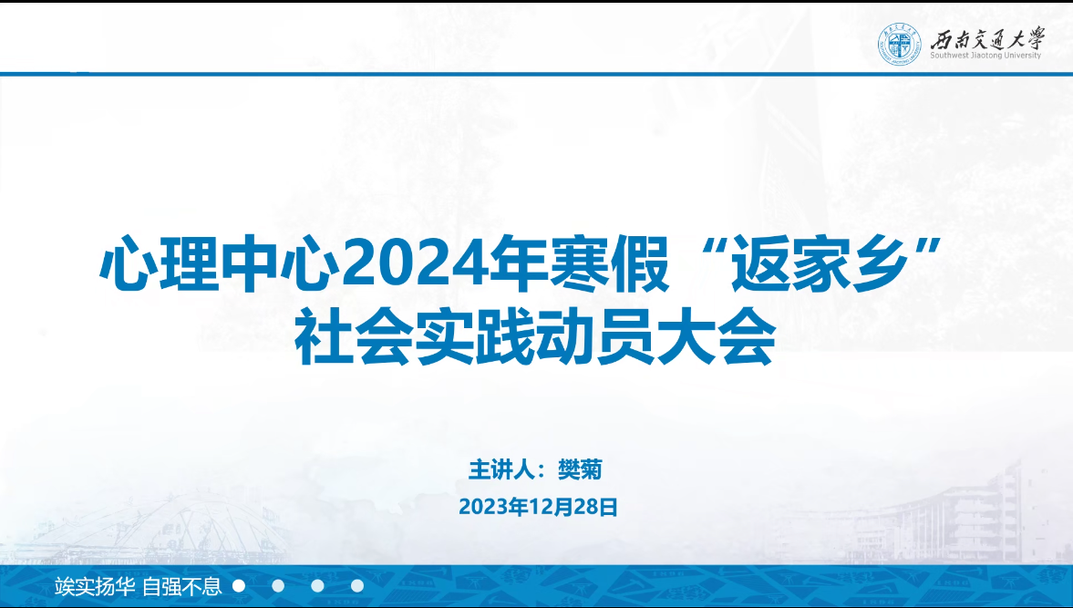 于2023年12月28日举办了2024年寒假“返家乡”社会实践动员大会此次大会旨在鼓励同学们积极参加寒假“返家乡”社会实践活动,通过实际行动服务社会,为国家建设贡献力量。