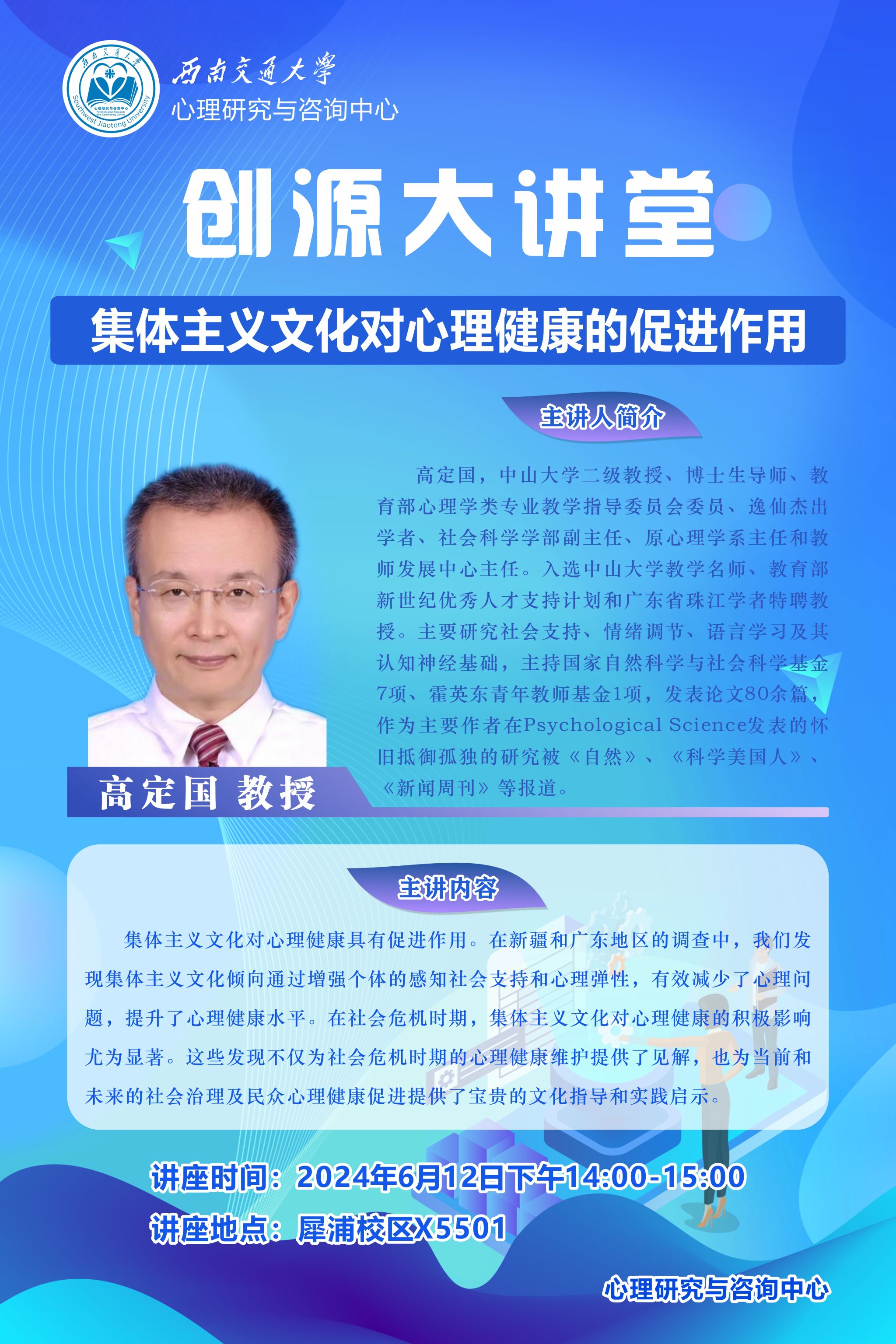 【创源大讲堂】集体主义文化对心理健康的促进作用