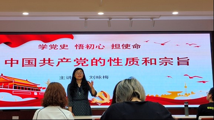 2021年5月13日18:30,刘咏梅书记为入党积极分子主讲了题为《中国共产党的性质和宗旨》专题党课。刘书记从“一个领导核心”、“两个先锋队”、“三个代表”三个方面向积极分子讲解了党的性质。她首先向积极分子们介绍了中国共产党名字的由来和意义,以及中国共产党全心全意为人民服务的宗旨,让积极分子们对党有了更深刻的理解。最后,刘书记从“阶级性保障纯洁性”、“先进性保障正确性”、“历史和人民选择了中国共产党”、“党的建设是党永葆领导核心的法宝”四个方面为积极分子们解答了“党何以成为中国特色社会主义事业的领导核心”这一核心问题。
