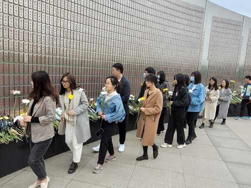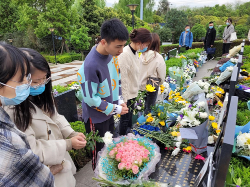 最后,大家怀着沉重的心情来到烈士墓园,一座座碑文记录着烈士们的生平,时间仿佛停止在了此刻,老师及同学们纷纷伫立默哀,献上手中的鲜花,向烈士们表达最诚挚的崇敬之情。