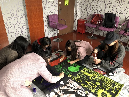 张学伟老师先给大家介绍了本次活动的规则,然后大家挑选自己喜欢的颜料和画笔,在纸上开始作画。绘画完成之后,张老师引领大家分享自己的创作历程,引导大家发现绘画中发生的与日常生活中的相似之处,引发大家的思考。最后,同学们与自己的画作拍照留念,本次团体活动在一个愉快轻松的氛围中结束了。