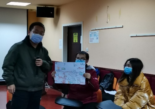 团辅开始前。辅导员陈瑶介绍了本次团辅的带领者与培训的意义,接着由带领者引导心理观察员们进行自我介绍与热身活动。在大家彼此认识之后,进入此次团体辅导活动的主要内容。主要内容分为四部分,分别是“警察和小偷”、“图形勾勒与剪纸”、“故事构成”、“故事讲解与分享”。在“警察和小偷”的环节中,同学们画在纸上的不同轨迹能让同学们了解自身的沟通特点,比如开放或是保守。而“故事构成”与“故事讲解”则让同学们体会如何在团队中良好沟通并通过有效的沟通来获得成功。