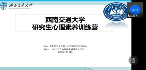 辅导员陈瑶主持,全校2020级研究生新生班级心理观察员参加此次培训。