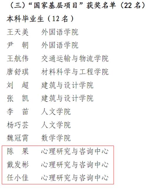 2016级应用心理学专业参加“美丽中国支教”项目的陈果、戴发彬和任小佳,具体公示如下: