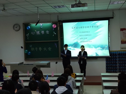 副主任兼峨眉咨询部主任王琛老师、峨眉咨询部副主任李玉梅老师和峨眉咨询部专职心理教师赵轶群老师外,还有心理学会全体新老成员。与此同时,也邀请到了峨眉校区其他各社团的干部代表参与此次心理学会的迎新大会。
