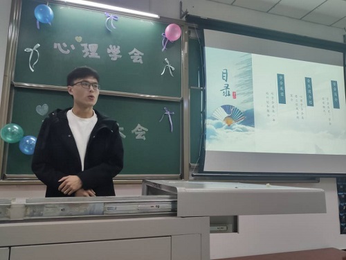 接着,大学生心理学会副会长刘慧辉介绍心理学会。学会成立于2000年,致力于服务学校的心理健康活动,服务于老师的教育教学,服务于同学心理健康知识的传播与普及,更起着联络与沟通的作用。心理学会设有学术部、办公室、宣传部3个部门。今年共有四十五名新干事加入大学生心理学会,连同原有的干部同学,学会共有五十五名学生和三名指导老师。相信在老师的指导和同学们的共同努力下,吃瓜黑料