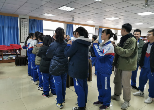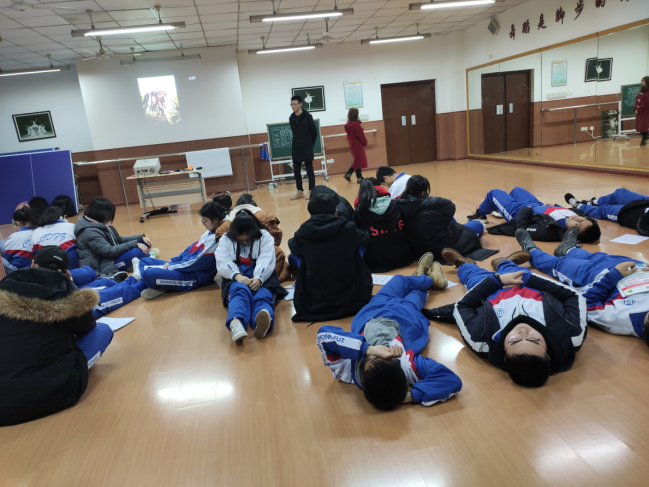 当天下午,科普基地“科学第一课——走进校园”活动的学生志愿者:齐子行、申宇、蔡亚静小组,吕雅玲、李丙龙、彭福焮、权绍琦小组和尹一凡、张浩男、李睿淇、王淑君小组分别在学校的学术厅、形体教室和阅览室为学校的高三一班、二班、三班进行放松团辅。