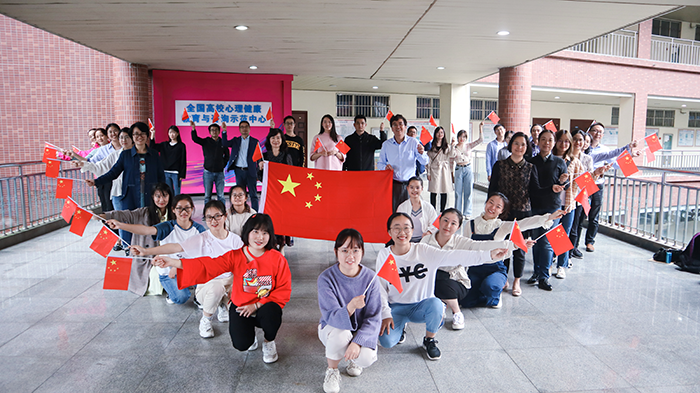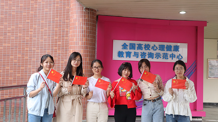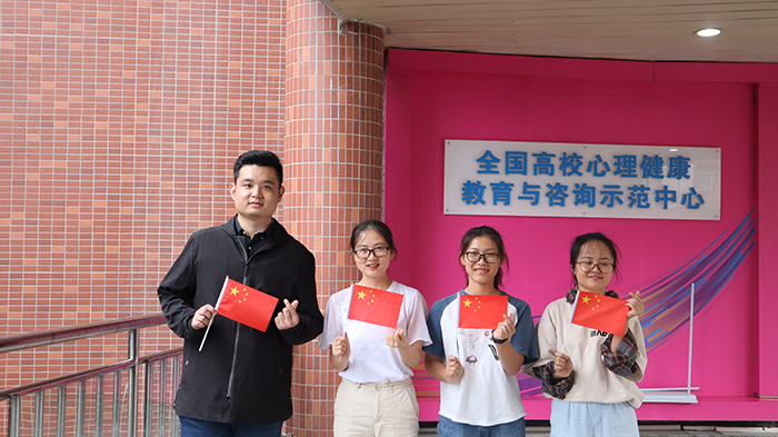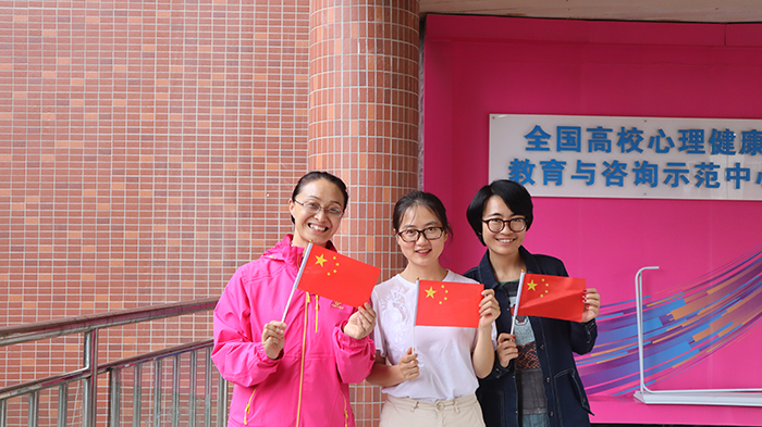 9月26日下午,为庆祝新中国成立70周年,吃瓜黑料 筹划了“青春告白祖国,我与国旗合影”主题活动。中心师生代表们齐聚五教,站成心形队列,高举五星红旗,表达对祖国的祝福。