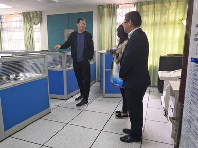 最后, 马老师带领中铁物贸公司的代表参观了中心的实验室,进一步介绍中心的基本情况以及特色亮点,中心近几年的成就、专业培养以及发展前景等。