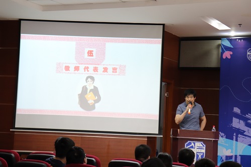 陪伴了同学们四年,看着他们一步步成长、走向新的征途,老师也有许多期盼。肖放老师代表老师们发言,道出了临别的祝愿及殷切的期盼。