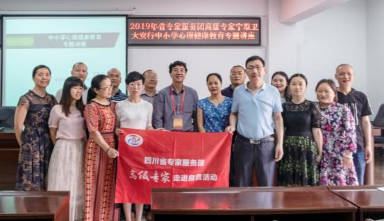 按照智力需求单位的要求,宁维卫教授对自贡市大安区教育局所属的区县及乡村学校江姐中学、江姐小学、大安区凤凰学校和大安区回龙镇中心校开展调研、答疑教师问题和现场指导工作,大安区教育和体育局安排了心理健康教育座谈会和专题讲座,参培校级干部35 人。