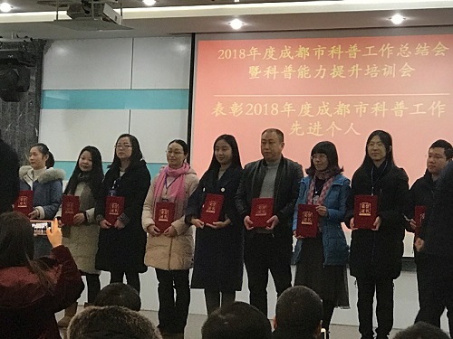会上总结了2018年全市科普工作,对2018年新命名的17家科普基地进行授牌,表彰了2018年科普工作先进集体、先进个人。因工作认真负责、表现突出,中心唐静老师获得了“2018年度成都市科普工作先进个人”的表彰。