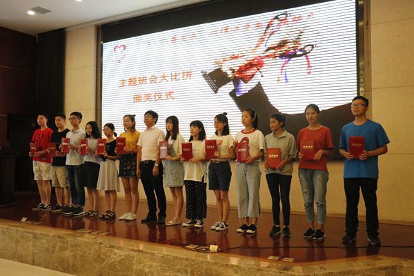 然后分别对经典阅读分享诵读会、主题班会大比拼、优秀心理委员和优秀心理标兵的获奖同学进行颁奖。在大家热烈的掌声中,心理主题班会大比拼获奖班级代表16级交控6班尹勇森同学上台发言,向大家传达了他参加主题班会大比拼的心路历程和感受。