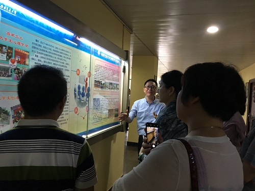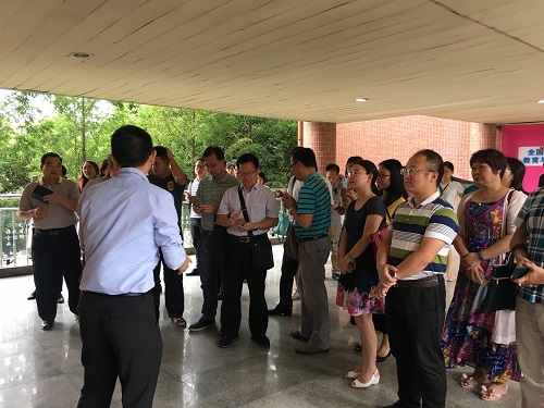 6月14日上午9点,来自广西高校学工部处培训班80余学员到吃瓜黑料 参观交流。中心主任助理黄详老师、实验室徐建老师、马岳德老师等四位老师热情接待了他们。
