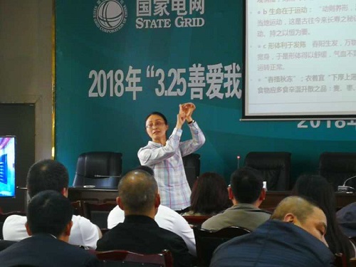 下午,应国网四川省电力公司资阳市雁江供电分公司邀请,唐静老师面向电力公司员工开展了以《健康的秘密》为主题的养生知识讲座,何立群老师在安岳分公司开展了以“安全心理”为主题的素质拓展活动。