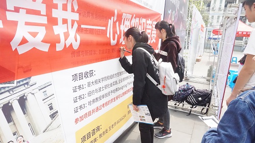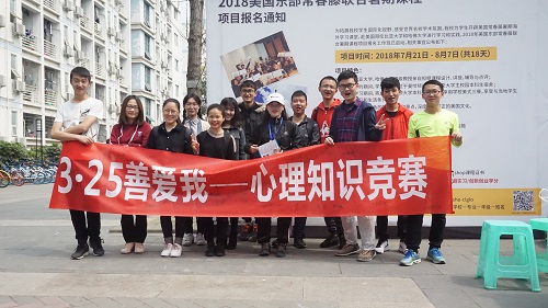 心力网承办的3•25(善爱我)心理知识竞赛活动在南区二食堂门口举行。活动主题是“师生健康,快乐生活”。