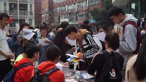 在活动开始后,记者团的同学们积极热情地向经过的同学发放心理健康知识的宣传单,并邀请同学们参加到知识竞赛。记者团同学们耐心细致的讲解和丰富的奖品,不断吸引同学参加到活动中来。整个活动现场参场面都是答题、领奖、签名,井然有序,直到准备的奖品发完为止。在活动进行的过程中,有一些比较有趣,记忆深刻的事,比如:有一对情侣获得了一等奖的奖品,那种成功后的喜悦,后来的牵手离开,我想他们爱情是幸福的,长久的,令人羡慕的;还有两个男同学,他们在一等奖,二等奖之间纠结了好久,才决定挑战一等奖的题目,最后挑战成功,并荣获了我们一等奖的礼品。是的,现在他们面临只是在小小的竞赛场上的选择,而在以后的人生道路中他们还会面临各种各样的选择,愿他们在以后的人生中果敢地做出决择。