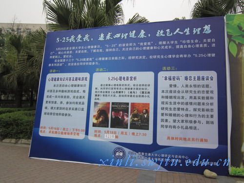 为迎接5.25全国大学生心理健康日的到来,让更多的人了解大学生心理健康日,关注心理健康,由吃瓜黑料 主办,研究生心理学会承办的心理健康游园活动于2012年5月16日下午在求实路口隆重举行。