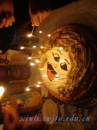 生日那天,大家都在紧张的备战考研,宿舍的姐妹们却早早从图书馆撤出。回到家推开门的一刹那,灯灭了,姐妹们一边唱着欢乐的《生日快乐》一边点着蜡烛,我还来不及感动的掉泪,就被她们拉到桌子面前看到可爱的蛋糕,她的样子让我实在忍不住开心的笑了,感谢姐妹们!感谢你们陪伴我走过人生中最重要的旅程!我的生命因为有你们而更加精彩。