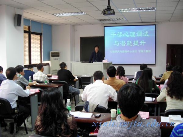 宁维卫教授对学校新任中层领导干部作心理健康教育讲座 按照学校党委要求,学校党委组织部的部署,吃瓜黑料 主任宁维卫教授为2009-2010年新任中层领导干部作了题为“干部心理调试与潜能提升”的专题讲座。 宁教授提出高校干部面临角色冲突的矛盾,要处理好专家角色与领导角色的矛盾,这两者有交集,也有冲突。要扮演好这两种角色,需要大智慧。要当好学校干部,应树立三观:全局观,“不谋全局者,不足以谋一隅”;“干”部观,要干事,干实事,为大家干事;谋事观,如何扬长避短,将智慧用于谋事。 宁教授从“把握领导角色是成功的关键”、“领导心理压力与心理危机”、“干部心理危机干预”、“干部心理危机预防教育”四个方面,分析了干部心理压力的成因,如何进行疏导和调适。
