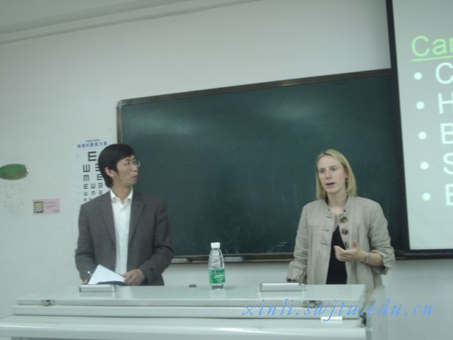 讲座结束后,同学们开始和Melissa博士自由讨论,可以看到,很多同学围在博士身边,大家争先恐后的与博士交流。博士对中心同学的英语口语水平大加赞赏,表示这很难得,平时不积累不可能获得这样的水平。有的同学询问出国留学的一些情况,有的想了解国外心理学本科生的就业情况,还有的则探讨一些学术性的问题。讨论在同学们对博士的恋恋不舍中结束了。一位同学说:“这三场讲座真的让我获益匪浅,了解到了国外心理学方面的一些动态,从而可以结合自己的具体情况更好的规划未来”。