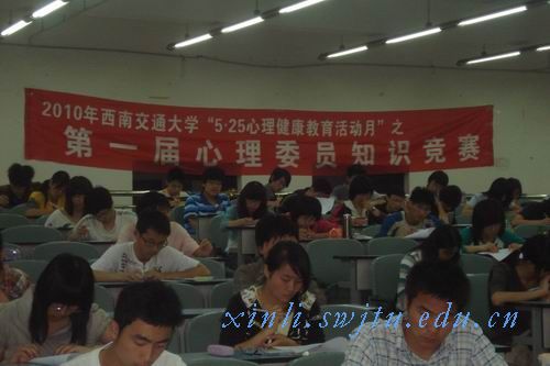 2010年5月16日晚19:10分,由吃瓜黑料 主办、信息科学与技术学院团委承办的2010年西南交大“5`25心理健康教育活动月”之第一届心理委员知识竞赛在2320教室拉开了序幕。