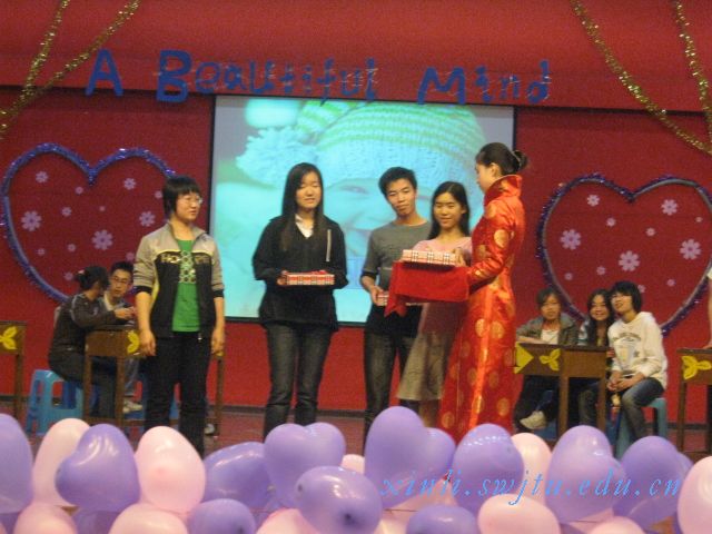 晚上7时,决赛正式开始。信息学院党委徐明质副书记,信息学院团委马琼书记,心理咨询与研究中心刘娣老师,材料学院胡珂老师,信息学院06级辅导老师夏亮老师,09级辅导员张立老师,心理学会张翼龙会长作为嘉宾来到了决赛现场。决赛中,共有来自外语、交运、环境、信息、艺传、物理六个学院的代表队。六个代表队首先作了简短精炼的自我介绍,不同的特色,一样的活力十足,自信满满。随后马上就进入今晚的重头戏,心理委员知识竞赛。竞赛的第一题是风险题,由参赛选手自己选择难度,答对加上相应的分数,答错扣分。经过第一轮的答题,5支队伍齐头并进。第二轮是最激动的抢答题,第四组代表队表现抢眼,一举抢到多题,此轮过后,独占鳌头。马上进入到最具有观赏性的情景题,根据抽到的题目,参赛选手自由发挥,30个来自各个学院的心理委员做大众评委,为参赛选手打分。在参赛选手准备过程中,主持人加入了一个和观众互动的游戏,使得现场气氛达到高潮,而之后参赛选手的即兴情景剧表演更是引得观众欢声不断掌声不断。表演完后,大众评委为自己喜欢的队伍投上一票,信息和环境代表队以7票成为了这个环节的赢家。