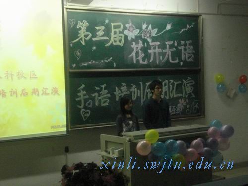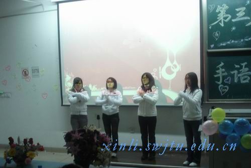 由我校交通运输学院心灵俱乐部承办的第三届“花开无语”手语培训后期汇演比赛于12月4号晚在2321拉开帷幕。交通运输学院学生工作组柯小梁老师、王宇老师及交通运输心灵俱乐部简易会长等来到了此次比赛现场。