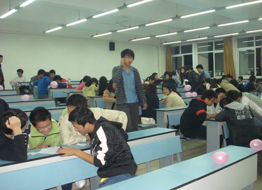 半个小时一晃过去,负责人员的一声“时间到”宣布了笔试的结束。同学们纷纷交上了自己满意的答卷,心中期盼着能够冲进复试。接着下一场精彩的笔试又开始了。要求新颖奇特的挑战、同舟共济地答题场面构成了一道亮丽的风景线。随着最后一场笔试的结束,海选接近尾声,负责人感谢各位同学的积极参与,并希望大家把此次比赛看作一次趣味活动,从中感受到无限快乐,收获更多有价值的东西,并告诉大家参赛的结果将会以短信的形式通知,希望大家耐心等待结果。