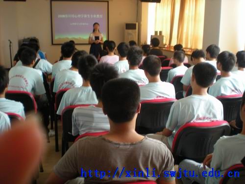 随后,陈华教授向09级的新生们对应用心理学专业进行了详细介绍。陈老师从社会需求和个人需求两个方面表明应用心理学是一门很有发展前景的学科。并从培养目标、课程体系、专业特色、师资力量和就业前景五个方面做了相关的专业介绍,并提出了相应的专业学习要求,鼓励新生们树立成长目标,做好四年的发展规划,积极参与各种社会实践活动。