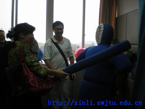 随后,老师们参观了心理动力实验室、情绪宣泄室与调节室、生物反馈团体心理心理训练。蒋老师为他们一一作了详细的介绍。在情绪宣泄与调节室,老师们还当场演练,亲身体验一番。论。”