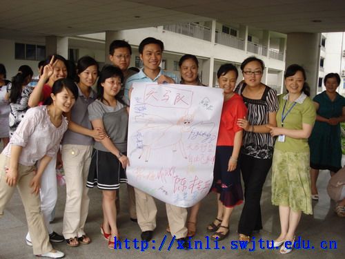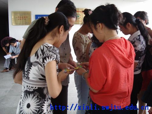 第一个是“找同伴”的活动。每位老师领到一块小图片后就积极投入到找队友进程中,欢声笑语一直不断。老师很快用手中图 片组成一幅幅漂亮的图画后,自然地分为三队了。按照活动规则,各队选出了队长,为自己队伍起了各具特色的队名,设计出队徽等。一队是犀牛队,“犀牛犀牛,犀浦最牛”;一队是天马队,“天马行空,自由飞翔”;最后一队是企鹅队,“犀浦企鹅家族,共同腾飞”。活动中充分展示了老师们极强沟通交流与团结协作能力,两项任务在很短的时间完成得又快又好。