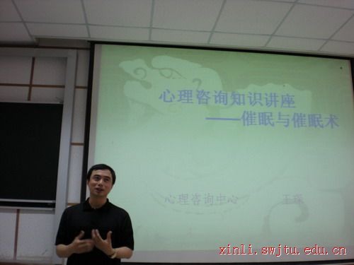 9号下午三点,我校峨嵋校区心理咨询中心王琛老师在七号阶梯教室为两校区的同学带来一堂精彩的心理咨询知识讲座——“催眠与催眠术”,博得同学们阵阵掌声。
