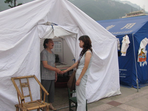 从四川工程职业技术学院出来后,宁主任一行人又赶往汉旺东汽进行调研,一路走访了沿途的各类志愿者、汉旺教育中心的值班工作老师和各安置点的受灾居民,了解他们的受灾情况以及他们目前的心理状态,为长期、系统的灾后心理援助积累第一手资料。调研工作本身也给予了被走访者莫大的鼓舞和安慰。