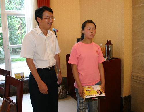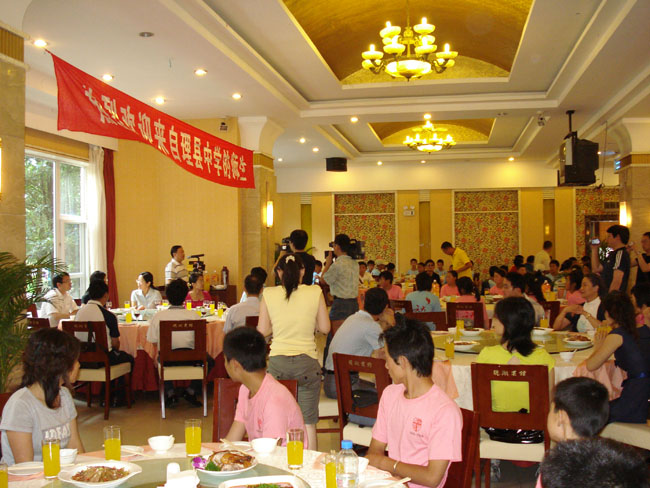 下午五点,四川省教育厅、理县教育局、江苏海门东洲中学的领导以及我校陈春阳校长、朱健梅副书记、各部门负责人齐聚镜湖宾馆,为来自地震重灾区理县的107名理县中学生送别。在送别晚宴上,理县教育局与江苏海门东洲中学举行了简短的交接仪式,江苏海门东洲中学将为这批学生提供两年时间的帮助。四川省教育厅、理县教育局、江苏海门东洲中学的领导分别发表了讲话,向社会各界对灾区学子的帮助表示感谢,并勉力学子们努力学习,奋发图强,报效祖国。我校陈春阳校长还将学校特意准备的电子辞典、文化衫等用品交给了学生代表,并祝他们一路顺风,在新的学校学习、生活愉快!