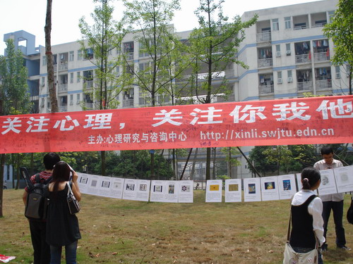 主办的心理图片展也热烈地开展起来。在这些图片中除了令人眼前一亮的精美的图片外,每张图片上还配不同的文字,有的是警醒的话语,有的是一段心情故事,有的是经典的哲人名言,有的是有关调节心情的办法等等。同学们流连其中,时而发出惊喜的感叹,时而啧啧称赞,时而点点头表示同意,时而露出豁然开朗的表情……他们欣赏着每一幅图片,细细地品味着这些心理图片带给他们的心理启迪,同时仔细阅读着那些穿插的文字,体验着文字所带来的心灵冲击。看完图片展览后,许多同学都说这些图片让他们从中获得很多的东西,不仅在视觉上给大家带来震撼,更是在心灵上给大家强烈的震动。