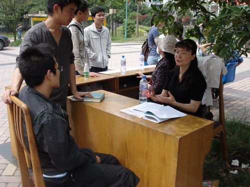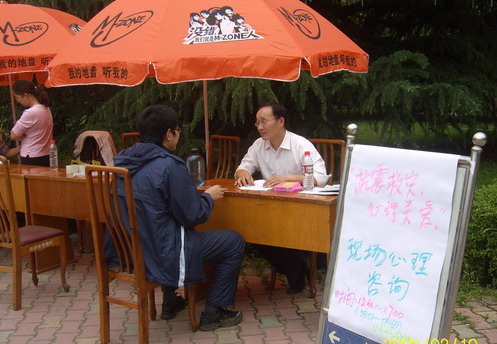 的老师们在犀浦校区的一食堂与三食堂之间和九里校区求实路路口为同学们进行了以“灾难应对,心理疏导”为主题的现场咨询活动。