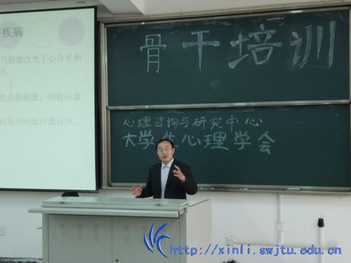 “有些人一遇到灾难性的事情如亲人去世,就很容易生病,这是为什么呢?”吴老师以一个问题的方式将大家引入今天的讲座主题。吴老师指出,一些疾病与人的心理有极大的关系,有些人出现心身疾病,是因为他们处于应激状态。而在我们日常生活中存在有许多应激源,例如在心理方面,人际关系出现问题时,人们往往会出现应激反应,产生焦虑、恐慌的心情,这些都对人们的身体健康有一些不利的影响。同时,吴老师从两方面给我们阐述了应激对健康的影响。从积极方面上来看,处于一定程度的应激状态,对个人成长的发展起推动作用。而从消极方面来说,长期的应激状态很容易会让人产生一些心身疾病。