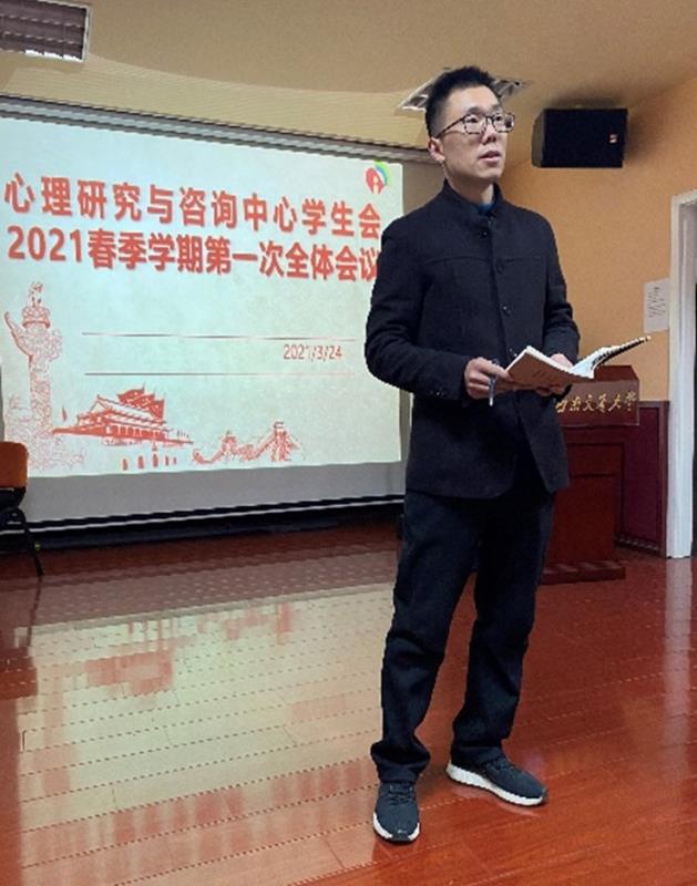 然后,辅导员靳涵进行了补充,总体上肯定了学生会上一学期的工作成绩,并总结过去一学期关于换届工作交接失误的经验教训,鼓励大家走好自己的步调;同时,她针对具体工作提出了指导意见,包括权益宣传部的新闻、推送工作应更加审慎,网络技术部的工作则应当更加注重细节等方面,并提议完善审核机制;此外,她强调学生会各部门之间消除“隔阂”的必要性,反对“各扫门前雪”的工作态度,倡导跨部门合作;最后,她强调学业与成绩的重要性,倡导学生会成员全面发展。