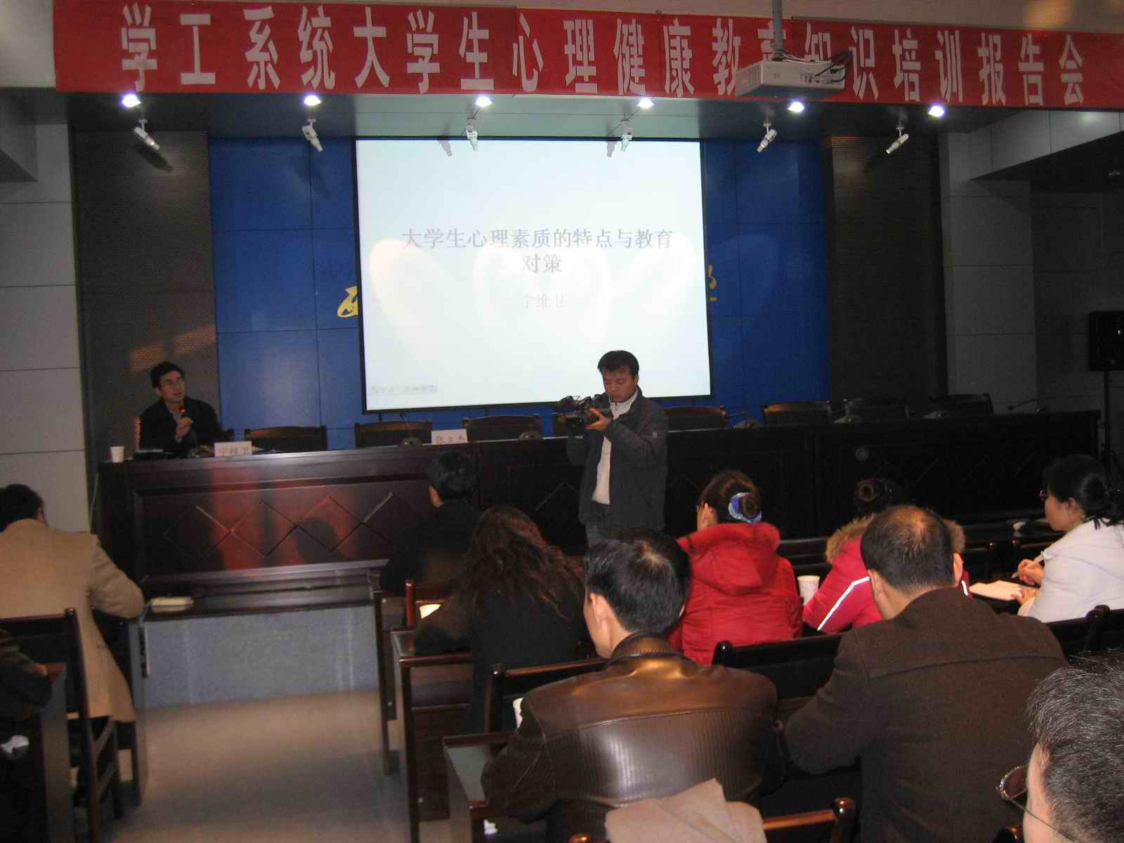 十二月十日上午,学工系统大学生心理健康教育知识培训报告会在临潼校区第二会议室举行。吃瓜黑料 主任、教育部哲学社会科学重大课题首席专家、四川省心理健康教育专家组成员宁维卫教授应邀为我校全体学工干部作了一场大学生心理健康教育知识培训报告会。校党委副书记张立杰、各院(系部)主管学生工作的书记、全体学工干部和部分教师聆听了报告。