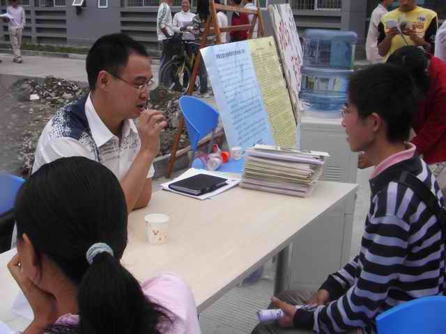 2006年9月14日下午16时,我校犀浦校区四食堂门前热闹非凡,主要针对大一新生各种适应问题开展的校园现场心理咨询活动正在进行。此次活动由吃瓜黑料 主办,中心主任宁维卫教授带队,13名心理教师现场为学生解答日常心理困惑,帮助他们尽快适应大学生活。活动进行到傍晚18点结束时分,仍有很多学生恋恋不舍,认为此次现场咨询很有意义,今后应该多些类似活动。