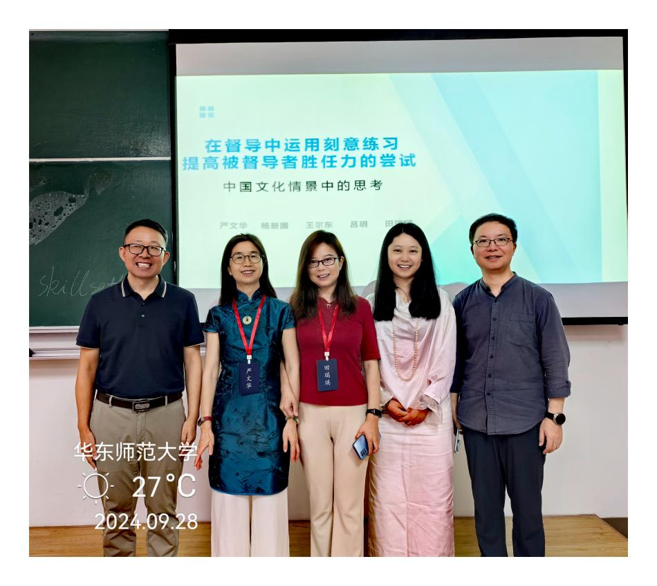 此外,田瑞琪老师还与华东师范大学心理与认知科学学院的严文华教授、广西大学马克思主义学院的杨新国教授、重庆理工大学重庆知识产权学院社会工作系的吕玥老师及苏州大学心理人工智能协同创新中心的王尔东博士,联合举办了《在督导中运用刻意练习提高被督导者胜任力的尝试:中国文化情境中的思考》工作坊。工作坊期间,田老师与参会的督导师们共同探讨了在中国文化情境下,如何基于胜任力模型有效开展刻意练习以提升被督导者的专业胜任力。