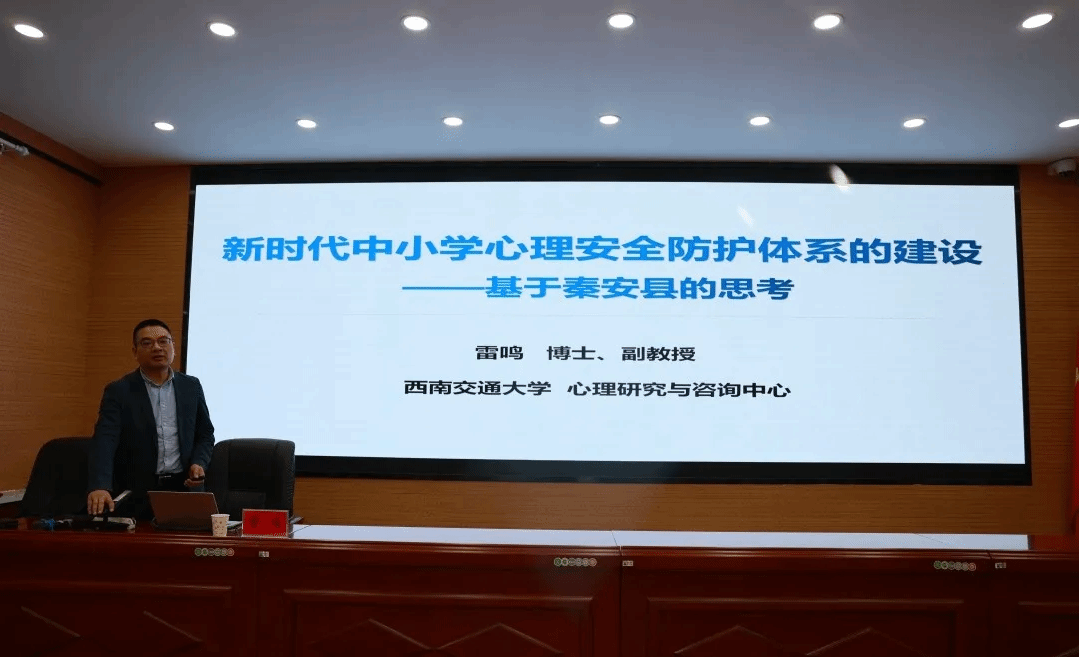 副主任、博士、硕士生导师雷鸣做了题为《新时代中小学心理安全防护体系的建设——基于秦安县的思考》的讲座。他根据当前国家对大中小学心理健康教育工作要求,结合前期带队赴秦安县走访调研、实地考察的情况,介绍了心理健康教育帮扶方案和项目实施的基本情况。通过报告,让30位骨干教师统一思想、统一工作认识,认真参与培训,把建设心理安全防护体系的工作在所在学校落实落细。