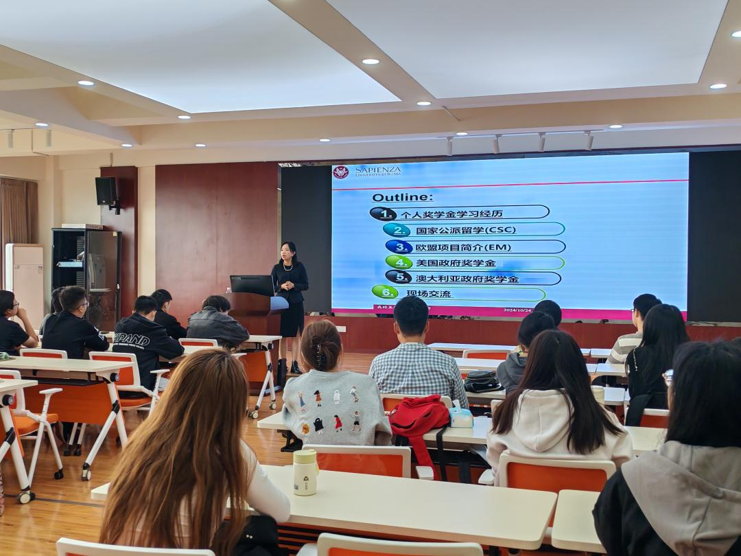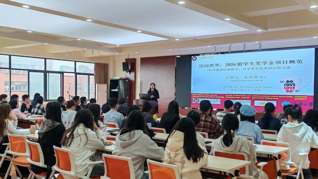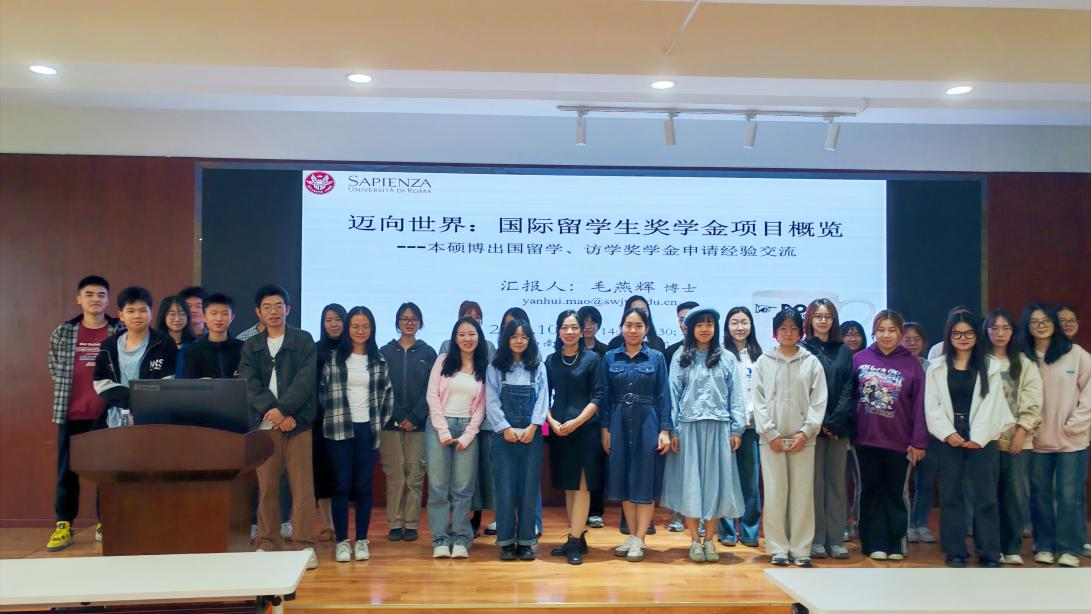 在犀浦校区X5501教室举办了一场题为《迈向世界:国际留学生奖学金项目概览》的讲座。本次讲座由青年讲师团成员毛燕辉副教授主讲,她结合自身丰富的留学和奖学金申请经历,为同学们分享了欧洲伊拉斯谟、美国富布莱特、澳大利亚政府奖、中国国家留学基金委等奖学金的申报概况。