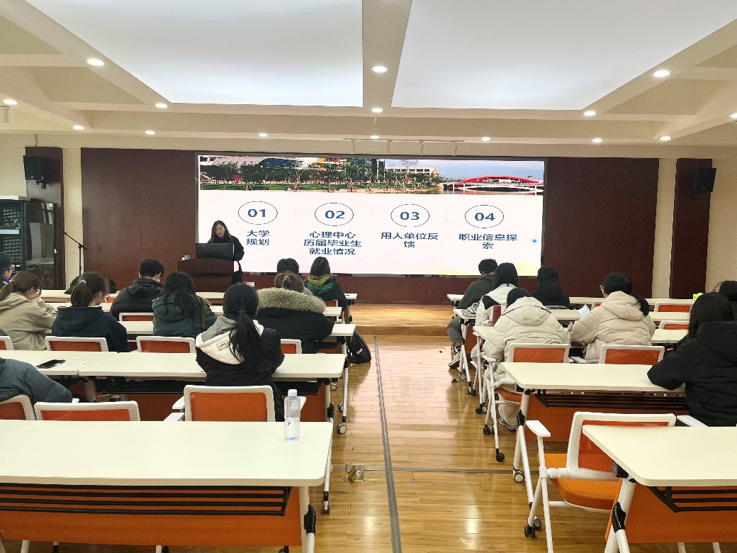 高级生涯导师樊菊老师主讲。旨在让新生了解生涯规划的重要性以及如何在大学时期进行有效的自我探索与职业认知。