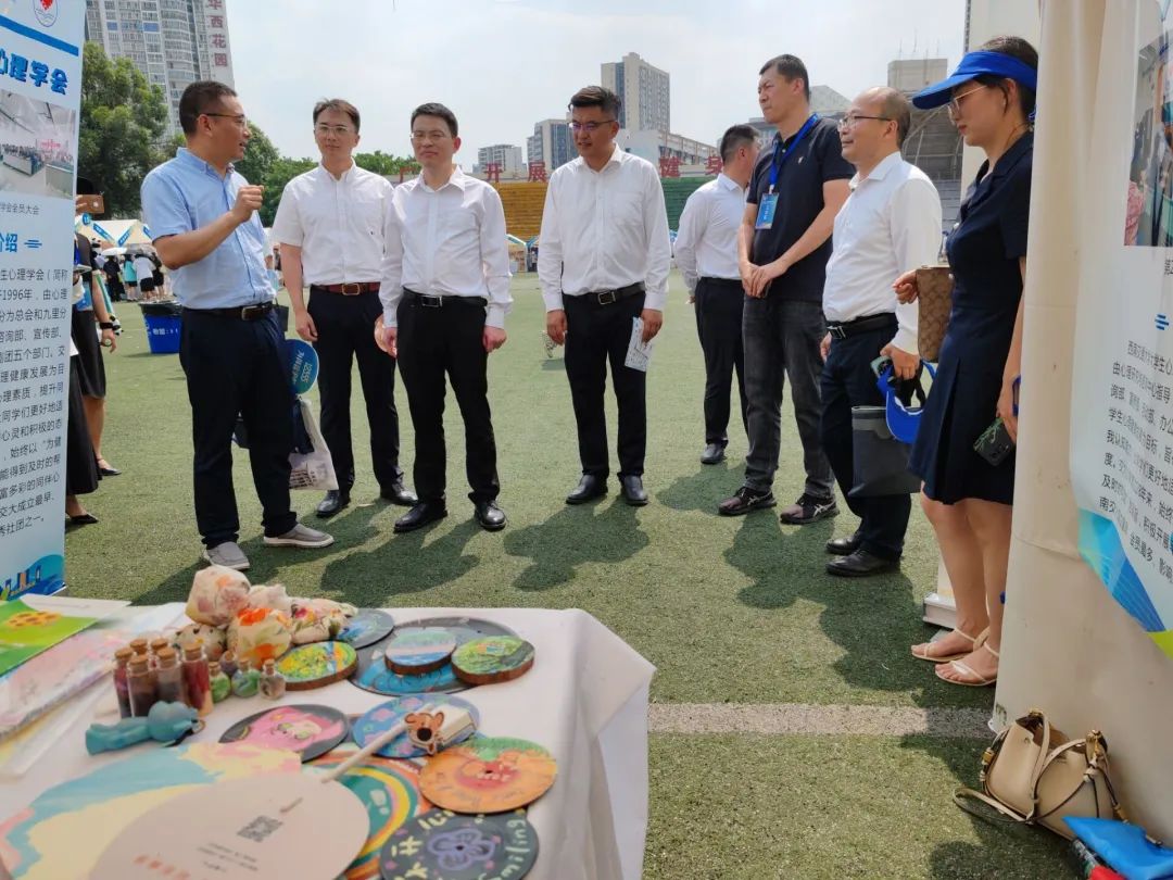 24日下午开幕式结束后,团中央权益部副部长时迎涛、共青团四川省委书记唐经天、共青团四川省委副书记华旦扎西、四川省心理学会理事长卢雄等领导莅临西南交大大学生心理学会展位,现场听取吃瓜黑料