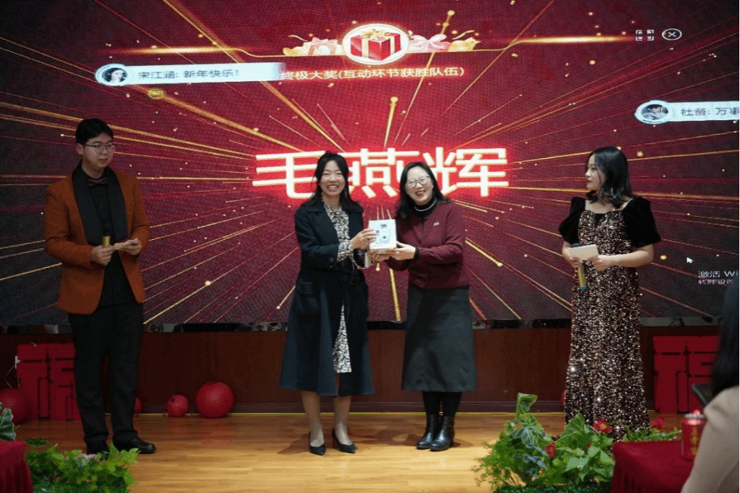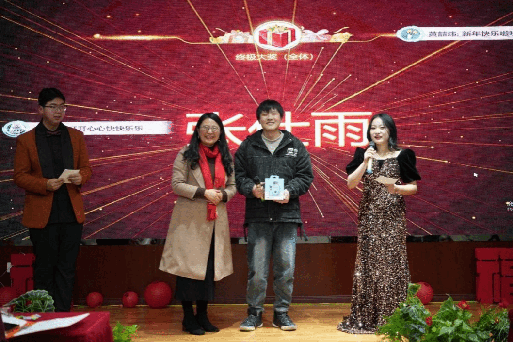 多个抽奖环节更是将晚会气氛推向一个又一个高潮!中心领导、老师纷纷上台为同学们抽取奖励。最后,在全场激动人心的倒数声中,中心党委书记刘咏梅和中心主任高雪梅为全场师生抽出两份终极大奖,并献上了新年的美好祝福。