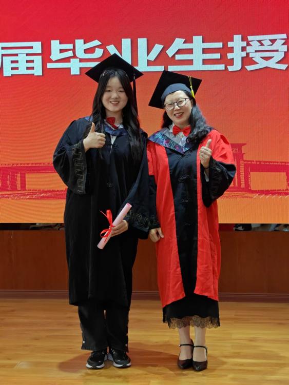 授位仪式环节,中心主任高雪梅为2024届毕业生们颁发学位证书,逐一为毕业生们正冠、拨穗,那一顶顶学位帽上的流苏,不仅标志着他们学业的圆满完成,也预示着他们即将启程的新篇章。